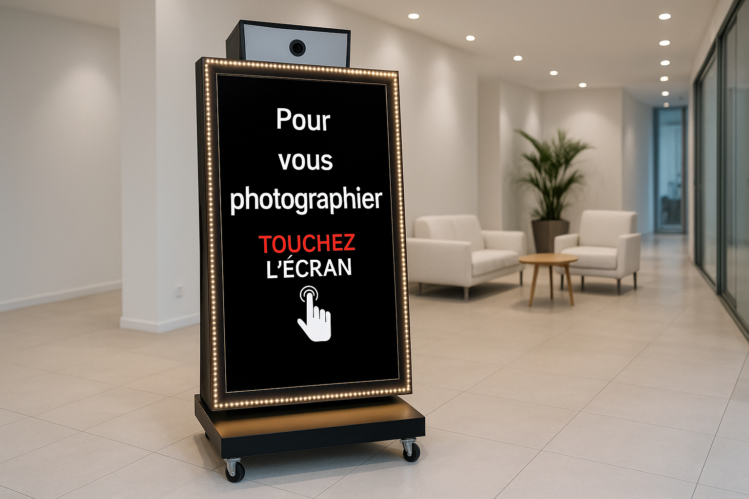 Photobooth Miroir Selfie (effet visuel immédiat, très apprécié en mariage).
