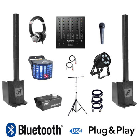 Ce pack combine une sono puissante en colonne, un éclairage dynamique, des effets scéniques et tous les accessoires nécessaires pour une animation réussie. Idéal pour transformer n’importe quelle salle en véritable piste de danse, que ce soit pour Noël, Eid, Hanoucca, Diwali, le Nouvel An ou une fête estivale.